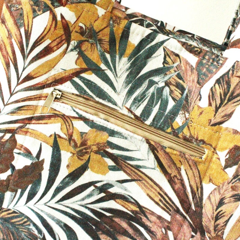 De tas is voorzien van een ritssluiting en heeft een katoenen voering.